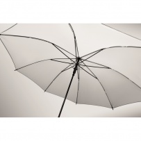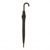 23-calowy prosty, automatycznie otwierany parasol z czarną metalową ramą, żebrami z włókna szklanego i panelami z tkaniny 190T pongee. Plastikowe końcówki i górna część. Gumowany, zakrzywiony uchwyt z tworzywa PP. Ręczne zamknięcie.