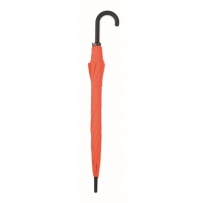 Parapluie droit 23 pouces avec armature en métal plaqué noir, baleines en fibre de verre et panneaux en tissu pongé 190T. Embouts et pointe en plastique. Poignée courbe en plastique PP caoutchouté. Ouverture automatique et fermeture manuelle.