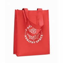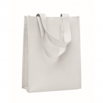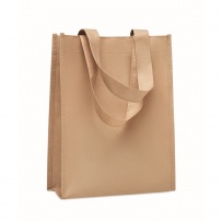 Small gift or goodie bag in RPET non-woven with short handles and gussets. 80 gr/m2.