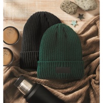Dzianinowa czapka unisex z akrylu na zewnątrz i poliestru wewnątrz, z izolacją 3M i wywijanym mankietem. Rozmiar uniwersalny.