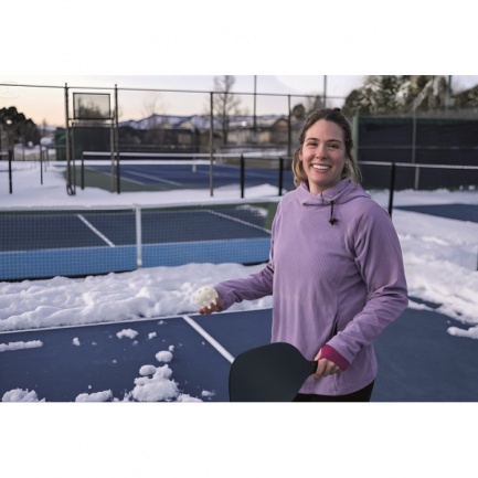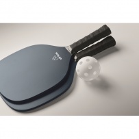 Zestaw do gry w Pickleball z 2 drewnianymi rakietkami i 1 piłeczką w pokrowcu z siatki RPET ze sznurkiem.