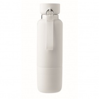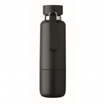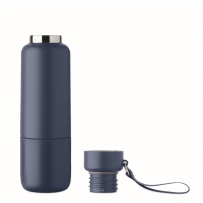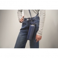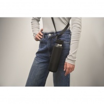 Dwu¶cienna izolowana butelka wykonana w 90% ze stali nierdzewnej pochodz±cej z recyklingu i w 10% ze stali nierdzewnej, ze zintegrowanym uchwytem z paskiem i dodatkowym długim paskiem (70 cm) w pokrywie z PP. Nie przecieka. W zestawie dolny kubek. Pojemno¶ć: 500 ml.
