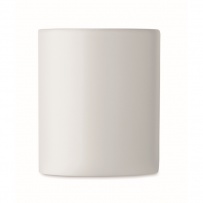 Ceramiczny kubek z drewnianym uchwytem. Pojemność: 320 ml. Pakowany pojedynczo w białe pudełko kartonowe.