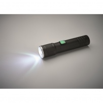 Latarka COB z możliwością ładowania, wykonana z aluminium pochodzącego z recyklingu. 100 lumenów z 3 ustawieniami światła i funkcją zoom. Wbudowany akumulator o pojemności 800 mAh. Kabel do ładowania w zestawie.