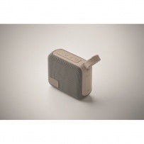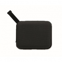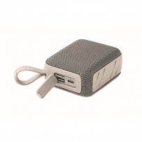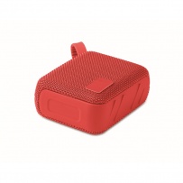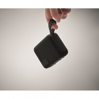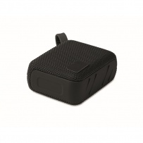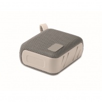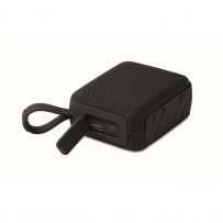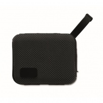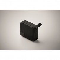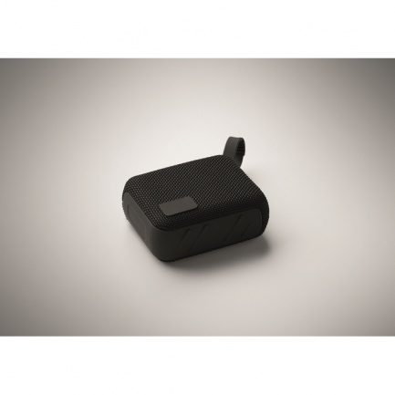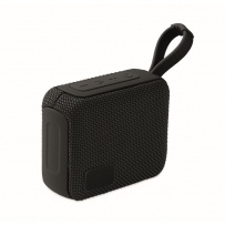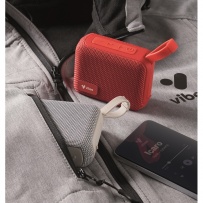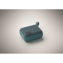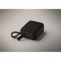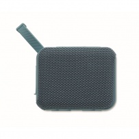 5.0 wireless speaker in ABS with RPET fabric and hanging cord. 1 Rechargeable Li-ION 800 mAh battery included. Includes an SD card port and an AUX/ USB cable. Output data: 5W, 3 Ohm and 5V. Playing time approx. 3h