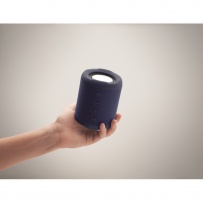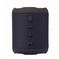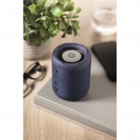 5.0 wireless speaker in ABS with RPET fabric. 1 Rechargeable Li-ION 800 mAh battery included. Includes an SD card port and an AUX/ USB cable. Output data: 5W, 3 Ohm and 5V. Playing time approx. 3h.