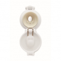 Butelka z podwójnymi ściankami ze stali nierdzewnej pochodzącej z recyklingu (90% stali nierdzewnej pochodzącej z recyklingu i 10% stali nierdzewnej) z zamkiem zabezpieczającym na pokrywie i opcją otwierania przez naciśnięcie. Nie przecieka. Pojemność: 300 ml.