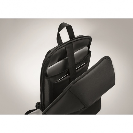 15 inch anti-theft laptop backpack in 600D RPET polyester. Features several compartments of which one additional padded for tablet and more. Padded shoulder straps and main compartment at the back.