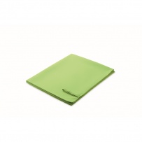 Handtuch aus Mikrofaser. 90% Polyester und 10% Polyamid mit Elastikschlaufe. Leicht und schnell trocknend. Maße: 70 x 120 cm.