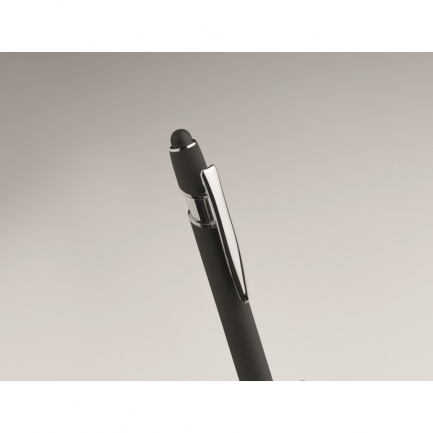 Druckkugelschreiber mit Stylus. Recyceltes Aluminium. Blaue Tinte.