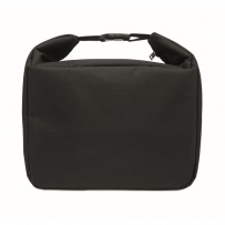 Cooler lunch bag with internal temperature indicator made of 600D RPET with 3mm PE foam with aluminium foil lining. Buckle closure. Zippered main compartment. With side zippered pocket. Capacity: 5 L