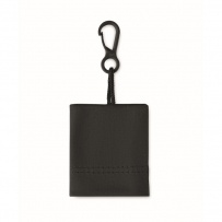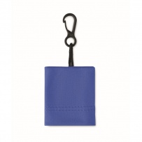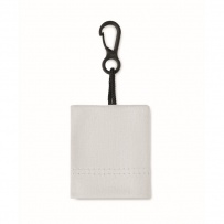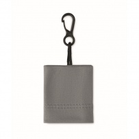 Lingette en RPET cousue ? la pochette en mati?re assortie et crochet de suspension en plastique PP.