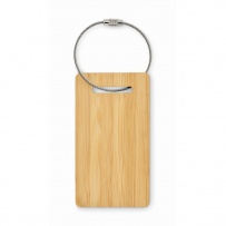 Bambusowa zawieszka do bagażu z linką ze stali nierdzewnej.