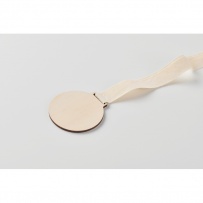 Medaille aus Holz mit Band aus Baumwolle und Steckverschluss aus Weizenstroh/PP.