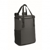 Plecak termiczny z wodoodpornego 600D RPET z izolacją z pianki PE i podszewką PEVA. Formowan pokrywa, wyściełany tył z siatki, przednia kieszeń na suwak i boczne kieszenie z siatki. Pojemność 20 l.