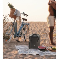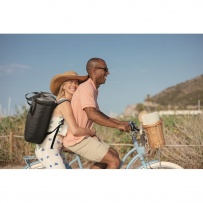 Sac ? dos isotherme en 600D RPET hydrofuge avec isolation en mousse PE et doublure PEVA. Couvercle moulé, dos en maille rembourré, poche frontale zippée et poches latérales en maille sandwich. Capacité de 20 litres.