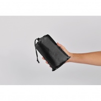 Leichte Strandmatte aus 210T Polyester. Inkl. 4 schwarzen Haken und passendem Beutel mit Kordelzug. Maße: 200x210cm.