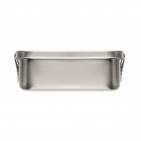 Boîte ? lunch en acier inoxydable recyclé (90 % d'acier inoxydable recyclé et 10 % d'acier inoxydable) avec boucles latérales sécurisées et coins arrondis. Capacité : 750 ml.