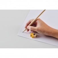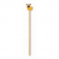 Drewniany ołówek z gumką w kształcie zwierzęcia.