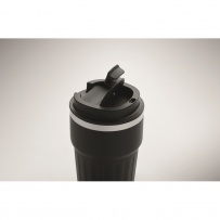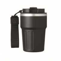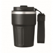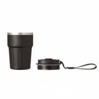 Carnet A5, stylo-bille en aluminium recyclé et gobelet double paroi en acier inoxydable recyclé de 350 ml avec couvercle ? glissi?re en PP et sangle dans une boîte cadeau.