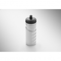 Sports drinking bottle with convenient handgrip in solid PE plastic. Capacity: 500 ml. Leak free.