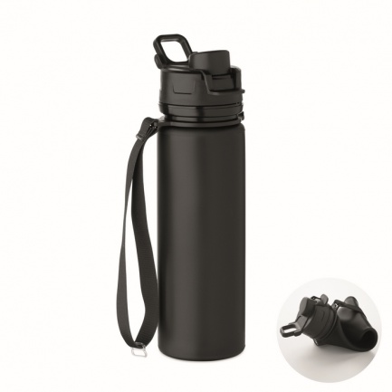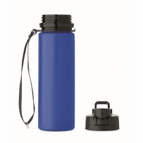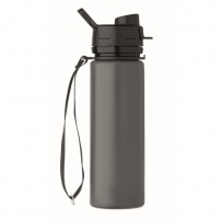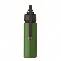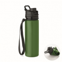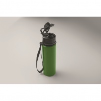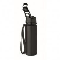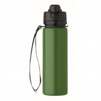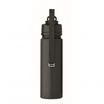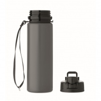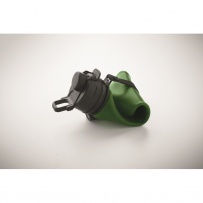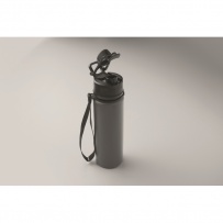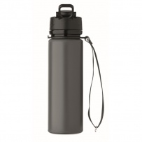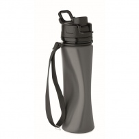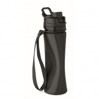 Faltbare Sportflasche aus Silikon. PP-Deckel mit Griff und Schlaufe aus Polyester. Transparenter Riegel zur Sicherung im gefalteten Zustand. Auslaufsicher. Füllmenge: 500 ml.