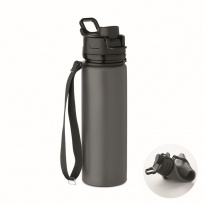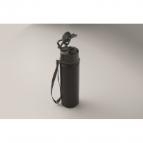 Bouteille de sport pliable en silicone avec couvercle en PP, poignée, sangle en polyester et boucle transparente pour la fixer lorsqu'elle est pliée. Anti fuite. Capacité : 500 ml.