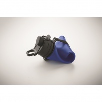 Składana silikonowa butelka sportowa z pokrywką z PP, uchwytem, poliestrowym paskiem i przezroczystą klamrą do zabezpieczenia po złożeniu. Nie przecieka. Pojemność: 500 ml.