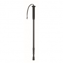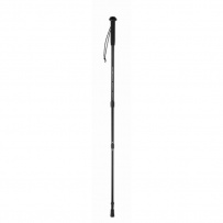 Telescopic walking pole with EVA handle, wrist strap, rubber tip, and mud basket. Adjustable from 105 to 120 cm. Packed in RPET drawstring pouch. Lightweight and durable design.