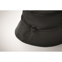 Wasserabweisender Fisherman-Hat, inkl. Beutel aus gleichem Material und ABS-Karabiner. Polyester 64 g/m2.