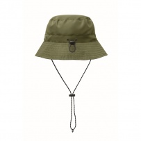 Chapeau de p?cheur déperlant en polyester, livré avec une pochette en tissu avec mousqueton en ABS. 64 gr/m2.