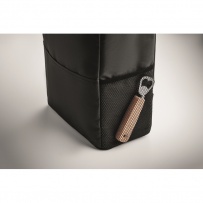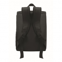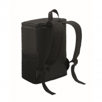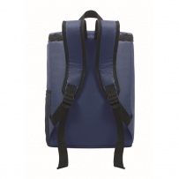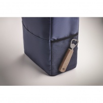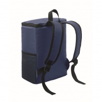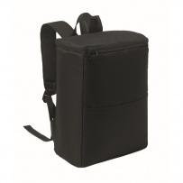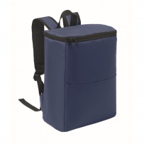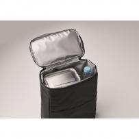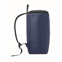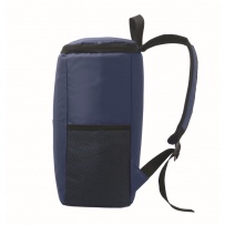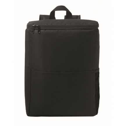 Cooler backpack in 600D RPET polyester with padded adjustable shoulder strap, 1 zippered side mesh pocket and 1 front pocket. PEVA lining with 13mm PE foam. Capacity 11L.