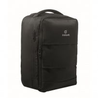 Plecak na kółkach z poliestru 290T RPET z 3 przednimi kieszeniami na suwak, wyściełaną przegrodą na laptopa 15'' i częścią chłodzącą na suwak. Ma wyściełane plecy, paski i tylną przegrodę na suwak.