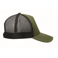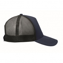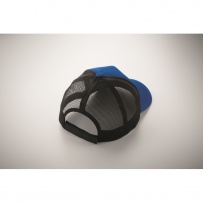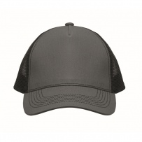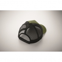5 panel trucker cap with front panel and visor in 250 gr/m2 cotton, back mesh in polyester, hook and loop closure.