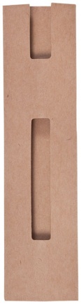 Ball pen sleeve in resistant recycled cardboard with natural color and window design.
