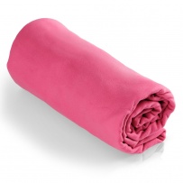 Ręcznik w czarnym, siateczkowym pokrowcu zamykanym na sznurek z klipem, produkt wykonany z mikrofibry o gramaturze 200 g/m2