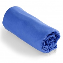 Serviette dans une housse en maille noire fermée par un cordon et un clip, produit en microfibre d'un grammage de 200 g/m2