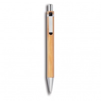 Bamboo ballpoint pen with metal ring clip and metal tip.
