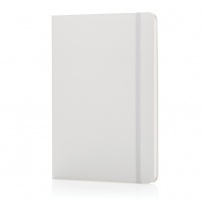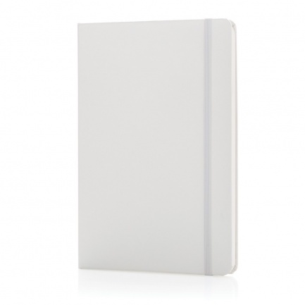 Notatnik A5 (72 kremowe kartki 70 g/m2 w linie), twarda okładka, tasiemka zakładkowa i elastyczna opaska do zamykania, ślad węglowy produktu: 0,54 kg CO2