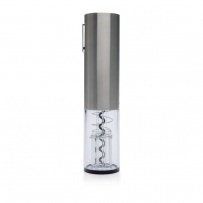 Modern electric corkscrew with innovative 3.6V lithium battery. With built-in blue light. Opens your wine bottle with ease in 8 seconds. Including micro USB cable to charge the device. Packed in a giftbox.