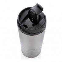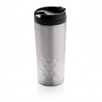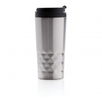 Fashionable stainless steel tumbler with geometric details. Inner body is made out of plastic. Handwash only. Content 300ml.