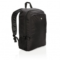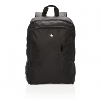 Streamlined styling and intelligently placed features add up to a minimalist footprint with this 600D & 1680D polyester backpack. 1 big main compartment sized to fit laptops with up to 17 inch displays. Second compartment with practical organization for everything else you need to carry. With side mesh water bottle pocket. PVC free.