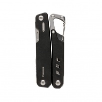Strong and durable multitool with 11 functions. With aluminium case and stainless steel tools. Tools include: needle nose plier, regular plier, wire cutters, knife, phillips screwdriver, flat screwdriver, saw, can opener, bottle opener, wire stripper, carabiner. Packed in gift box.