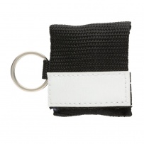 Small CPR face shield for mouth to mouth resuscitation in webbing style pouch with velcro closure and steel keyring. Conform EN 13485:2003.