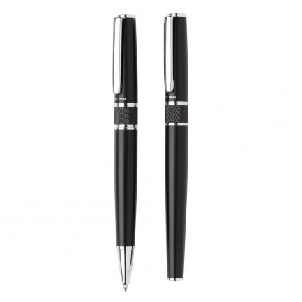 This luxury pen set brings elegance and style to your writing. The set consists of a ball pen and roller ball with blue ink in a beautiful gift box with embossed logo.The pen has a Dokumental ink refill with a t/c ball for ultra smooth writing. The roller ball has a blue Dokumental ink refill. Average writing length for both pens is 1200 metres.