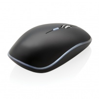 Bezprzewodowa mysz komputerowa, szybkie połączenie 125 Hz, przycisk do zmiany czułości działania, wbudowany akumulator litowo polimerowy o pojemności 300 mAh, ponowne ładowanie w 3 godziny, nadajnik USB w komplecie, grawer ukazuje podświetlaną powierzchnię, ślad węglowy produktu: 0,71 kg CO2