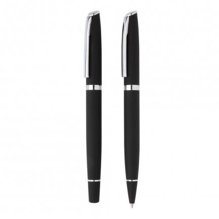 Ekskluzywny zestaw piśmienny, pióro kulkowe oraz długopis, matowe wykończenie, niemiecki wkład Dokumental? w kolorze niebieskim w komplecie, długość pisania długopisu ok. 1200 m, pióro kulkowe ok 400 m, w dopasowanym kolorystycznie pudełku ozdobnym, ślad węglowy produktu: 0,41 kg CO2