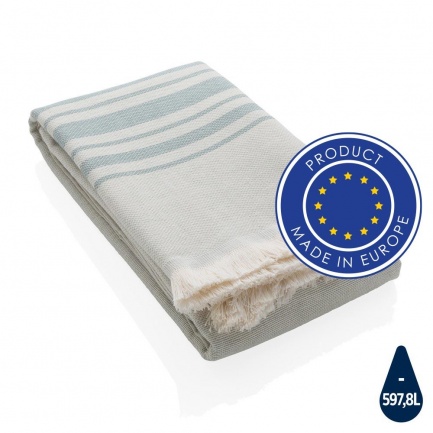 This lightweight, highly absorbent, sand-resistant, and quick dry towel is one of the best sustainable towels out there. Hammam towels are multifunctional: you can also use it as a picnic, baby blanket or as a yoga, beach, and gym towel. Even as a table cloth. Best of all, the thin material makes it ultra-portable and easy to toss in your beach bag, suitcase or over your shoulder. It's made from 88% OEKO-TEX-certified cotton (No harmful substances or dyes are used during the manufacturing process.) and 12% recycled cotton that's super soft and silky to the touch. With AWARE? tracer that validates the genuine use of recycled cotton. Each towel saves 597,8 litres of water. 2% of proceeds of each Impact product sold will be donated to Water.org. Made in Europe