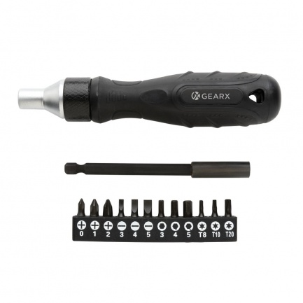Zestaw narzędzi, w komplecie wkrętak i oraz 12 bitów, wbudowany silny magnes, wykonany ze stali stopowej S2, w pudełku podarunkowym, ślad węglowy produktu: 1,31 kg CO2