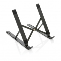 Aluminium laptop stand made with RCS (Recycled Claim Standard) certified recycled aluminium and TPU. Total recycled content: 99% based on total item weight. RCS certification ensures a completely certified supply chain of the recycled materials. The stand is foldable and can hold any laptop up to 15.6?. The stand can be adjusted to 8 different angles for optimal ergonomic posture when working on your laptop. Aluminium does not lose its characteristics in the recycling process and can be recycled endlessly. Compatible with most common tablets and laptops. With RCS certified recycled TPU strips at the bottom to avoid slipping. Packed in FSC? mix packaging.